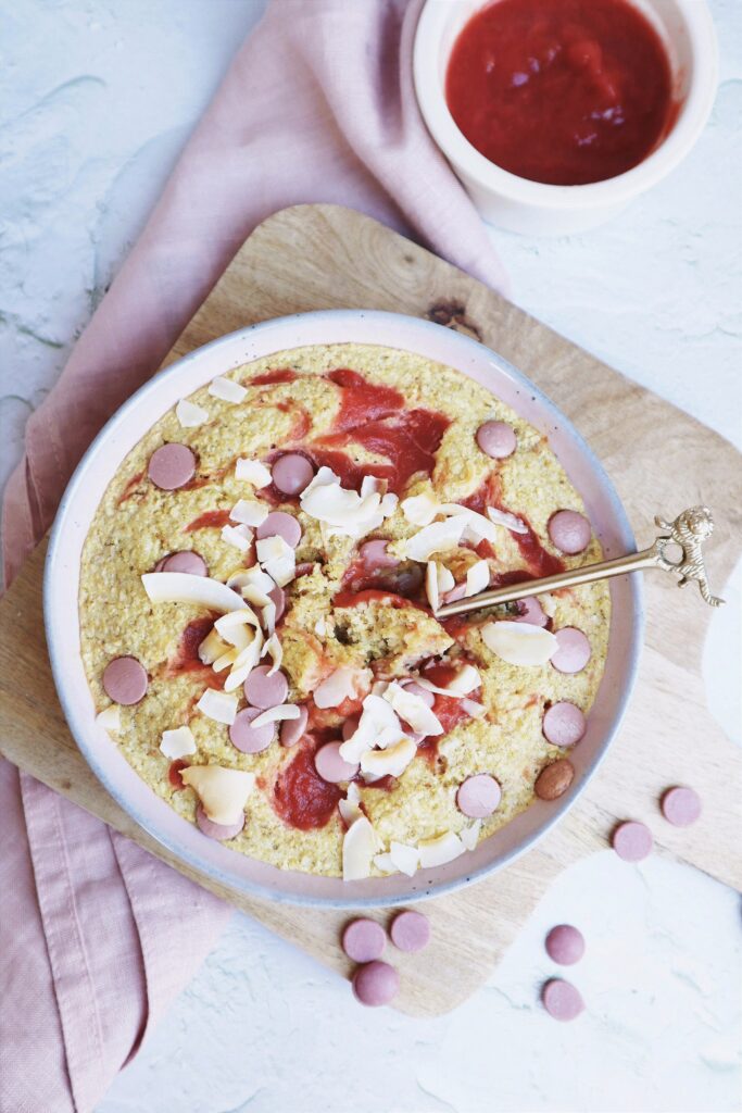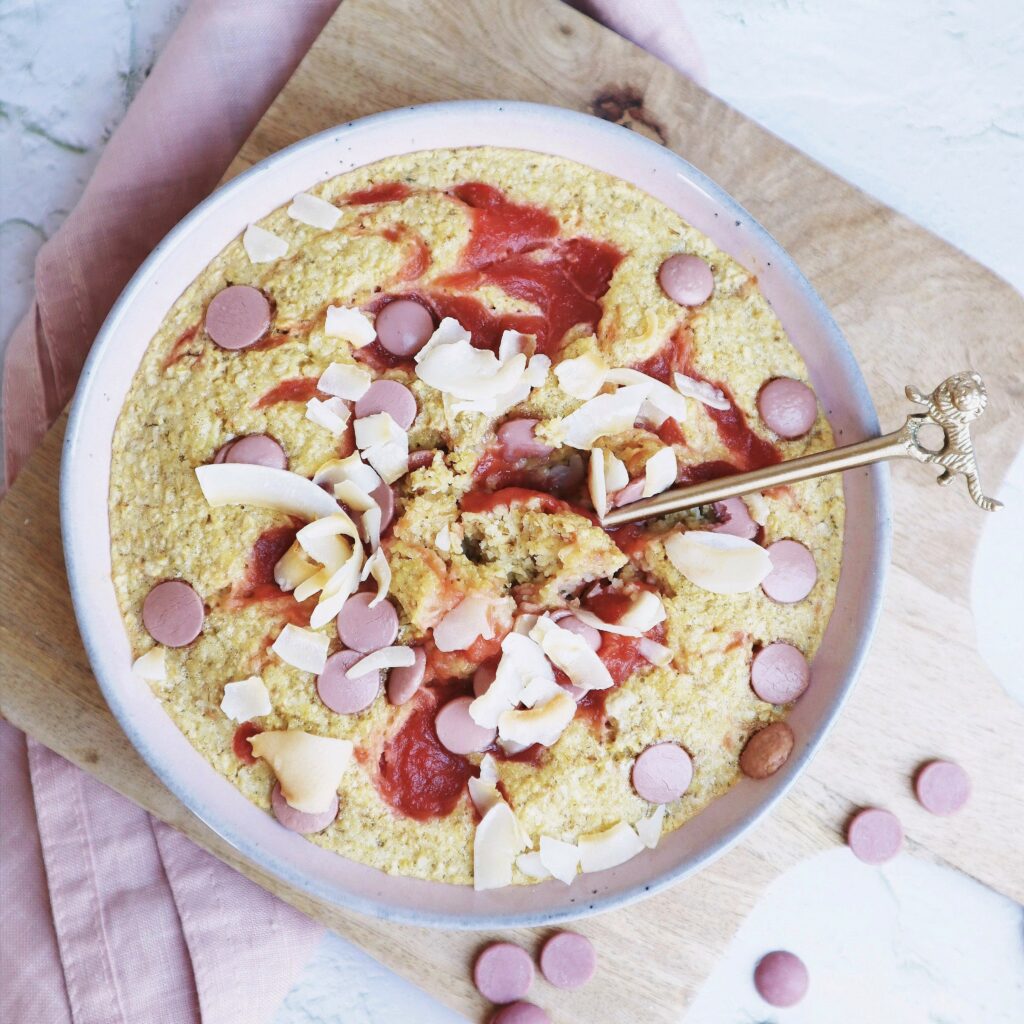 Deze baked oats met kokos en rabarber heb je in een handomdraai gemaakt! En lekker gezond en voedzaam ontbijtje, eigenlijk een soort havermouttaartje uit de oven 馃槈 De basis van baked oats bestaat uit havermout met ei, amandelmelk en bakpoeder, maar je kunt enorm vari毛ren! Ik maakte frisse variant met kokos en rabarber.. oh, en een beetje ruby chocolade omdat dat gewoon heel erg lekker is! In plaats van de rabarbercomp么te kan je ook heel goed een ander soort comp么te of jam gebruiken. Ik denk dat aardbei of framboos ook super lekker is bij de kokos en chocolade! Ik had de rabarbercomp么te toevallig nog in huis van een ander receptje.. die ga ik ook snel met jullie delen!